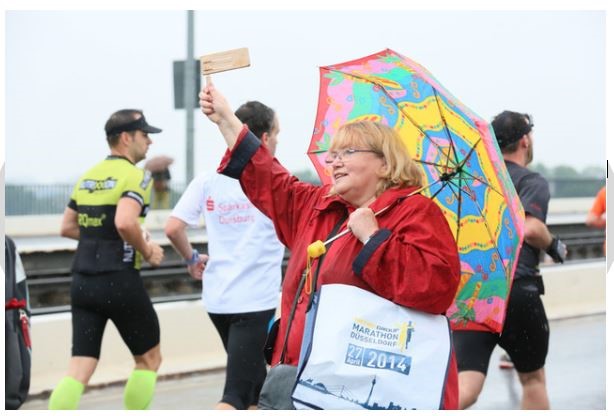 Au début du pont (à 9,5 km) Maman était là sous la pluie pour nous supporter avec la crécelle de Luca (voir photo ci-dessous qui est apparu dans la presse). C'est par la aussi qu'on a croisé les premiers, 2 éthiopiens en tête suivie d'un petit groupe de 20 coureurs. Eux il venaient de faire 10 km de plus que nous !